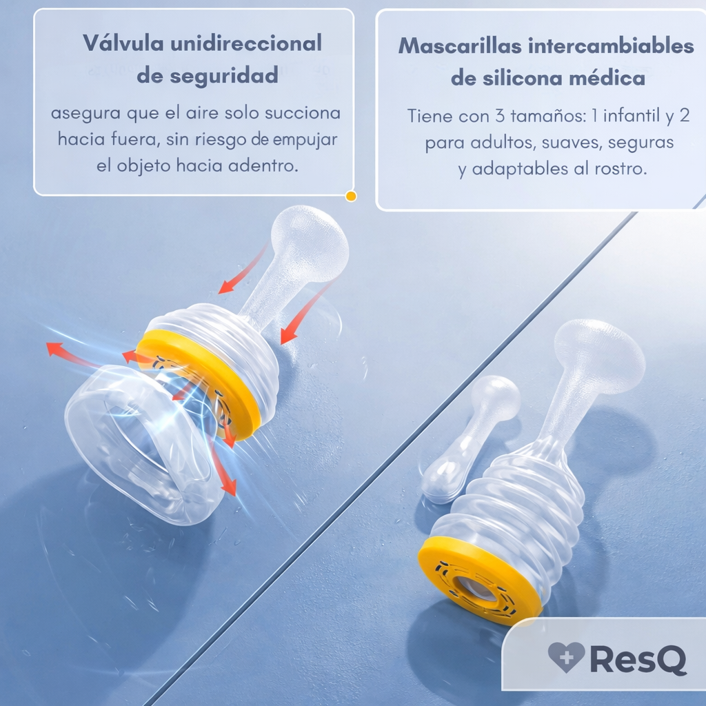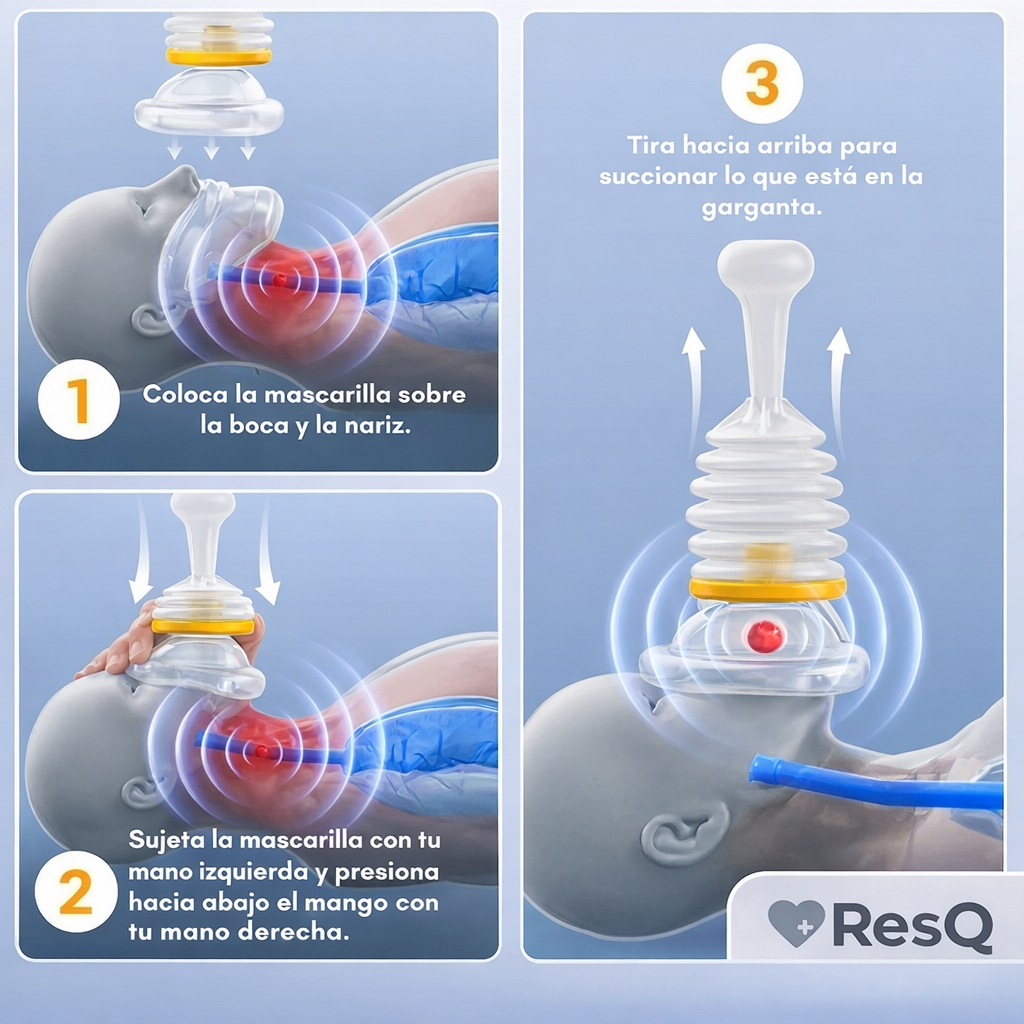 Es un dispositivo de rescate que utiliza succión para ayudar a retirar una obstrucción de forma controlada. Está diseñado para que cualquier persona pueda usarlo con un proceso claro, incluso sin experiencia previa.