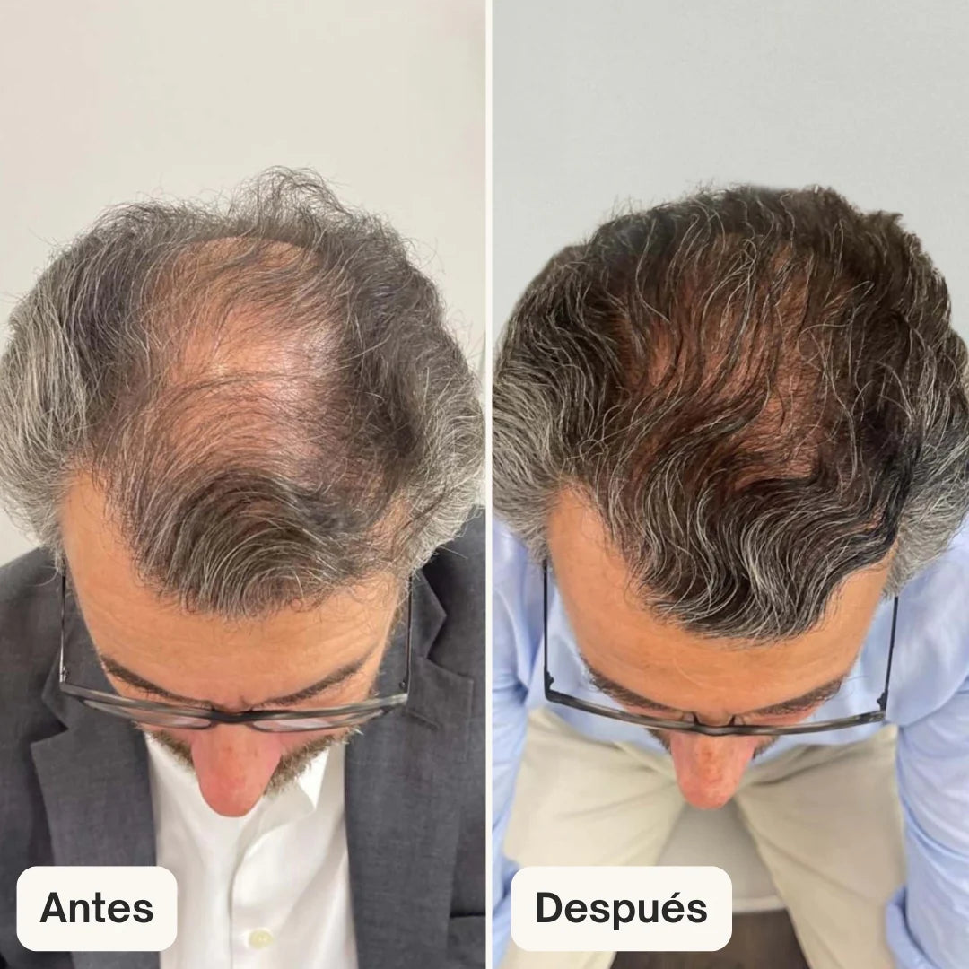 Aplica microfibras dequeratina naturalque se integran con tu cabello para mejorar entradas, coronilla, volumen y barba ensegundos.